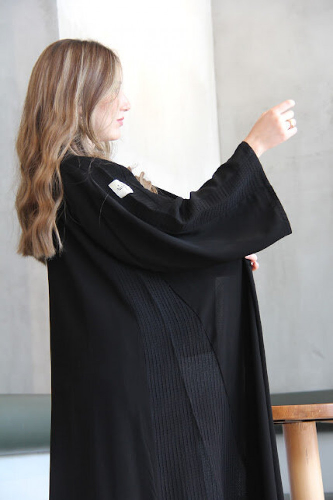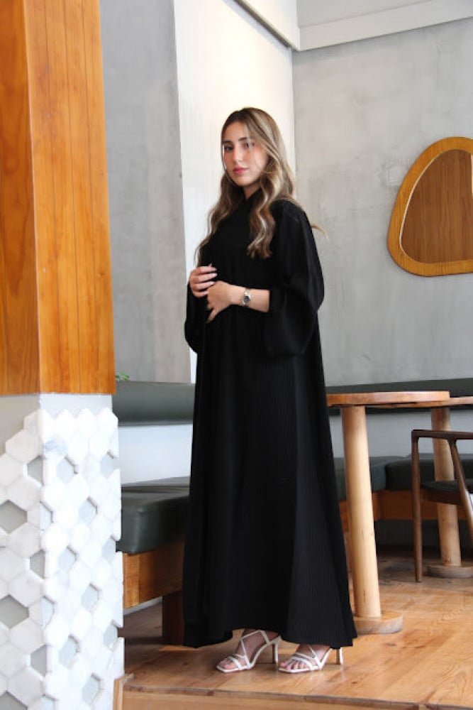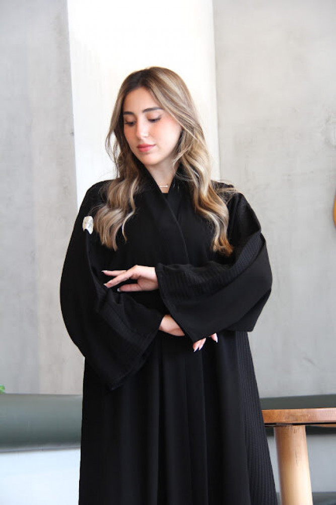 القماش كريب زاهي وتطريز ذهبي وفضي على الكم